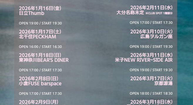 2nd single『幻実』発売記念弾き語りツアー“A PAGE OF YOUTH TOUR 2026” 開催決定!!